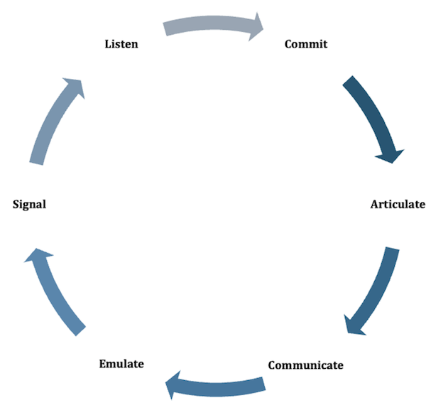 We open our minds with listening and feedback, not only to understand what’s working and what isn’t, but also to decipher what the current culture is. Our listening exercise may surface weakness in one or more of the steps that need to be addressed out of order. Let your context and data decide which step is most critical for you to tackle first.